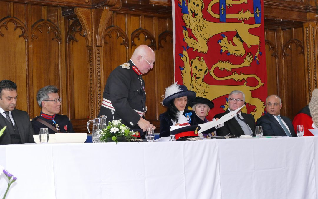 On April 12th, I was installed as High Sheriff at a splendid ceremony in Whitworth Hall at Manchester University. My appointment was evidenced by Letters Patent – an open letter from the Sovereign to her People read by the Undersheriff David Cam DL and witnessed by my two Queen Commissioners Professor Helen Stokes Lampard and Rizwan Khan with oversight from the Officiating Magistrate Susan Shaw Allison.